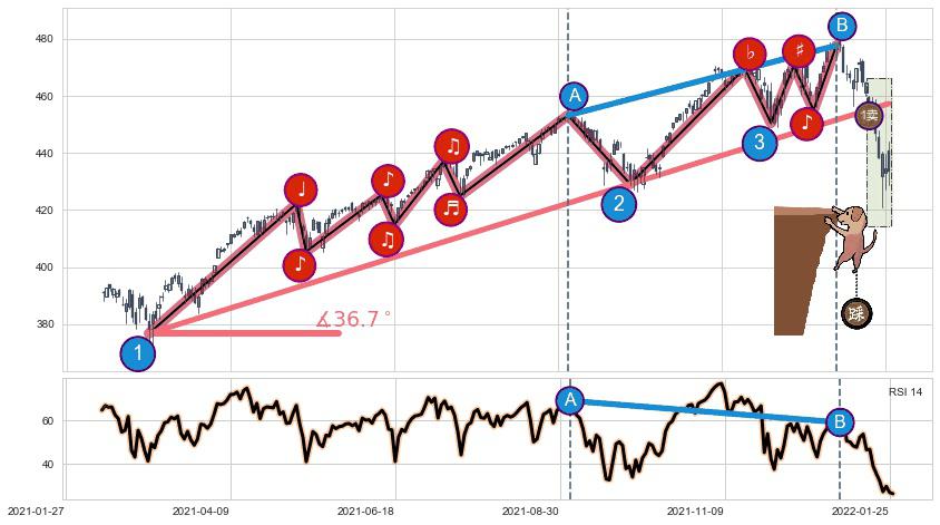 ✂️ 2021-03-04-2022-01-25上升趋势存在反转[风险],其原上升趋势的支撑位(457.31)已破位[强阻力信号],原上升趋势角度: 36.7˚