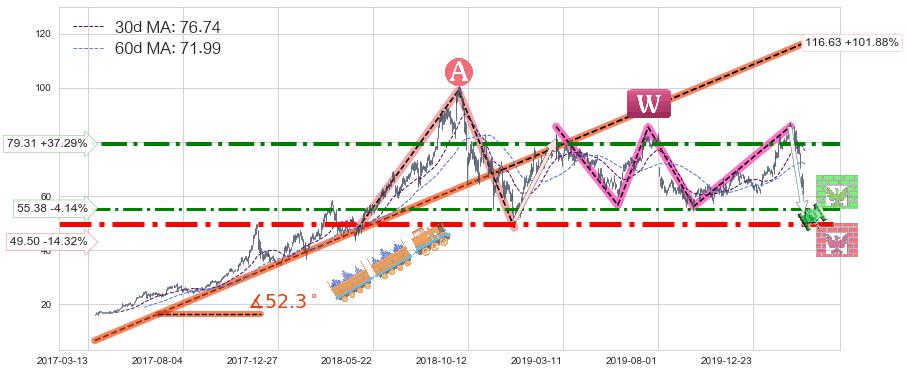 ♘ 阻力价格位55.38,可信任强度67.55%,距离最后交易2020-03-13形成的收盘价格57.77相差 -4.14%