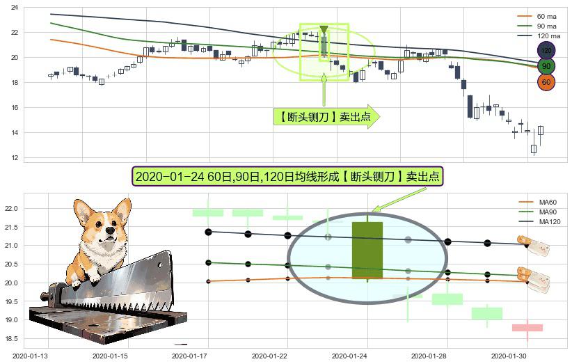 ⚀ 2020-01-24日显现 60日-90日-120日均线 【断头铡刀】卖出点 看空信号,后市看跌,卖出