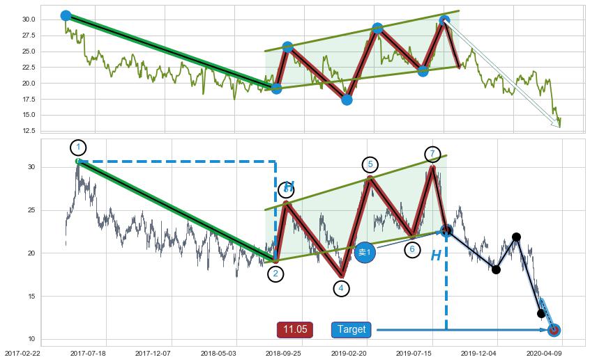 ➣ 最小中继整理跌幅→𝐇: 11.56 (𝐇旗杆的长度:旗杆起点→顶点)