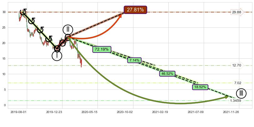 ➢ 循环浪继续向下【最高】位置(2020-12-29, 12.70),匹配聚类样本比例9.89%, 可能性概率7.14%