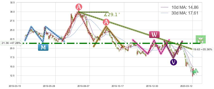 ♘ 阻力价格位21.36,可信任强度99.00%,距离最后交易2020-03-13形成的收盘价格14.50相差 +47.28%