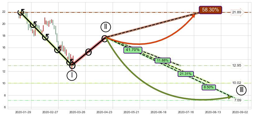 ➣ 循环浪继续向下【平均值】位置(2020-08-03, 10.02),匹配聚类样本比例51.12%, 可能性概率21.31%