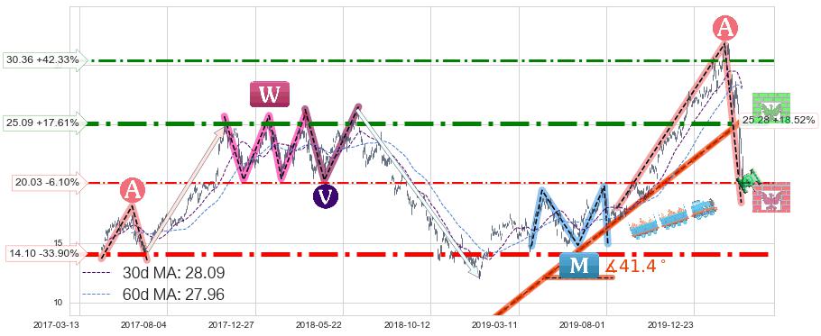 ♘ 阻力价格位30.36,可信任强度55.35%,距离最后交易2020-03-13形成的收盘价格21.33相差 +42.33%