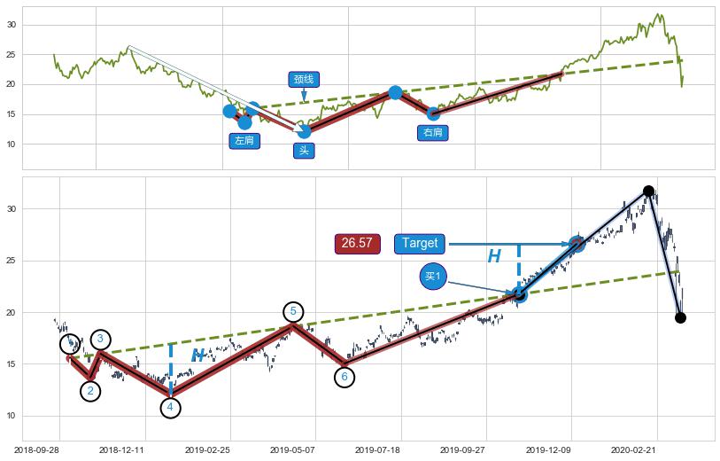 ➢ 【买1】: 激进型 买点 →(2019-10-24: 21.72 )形成突破头肩底【反转】形态