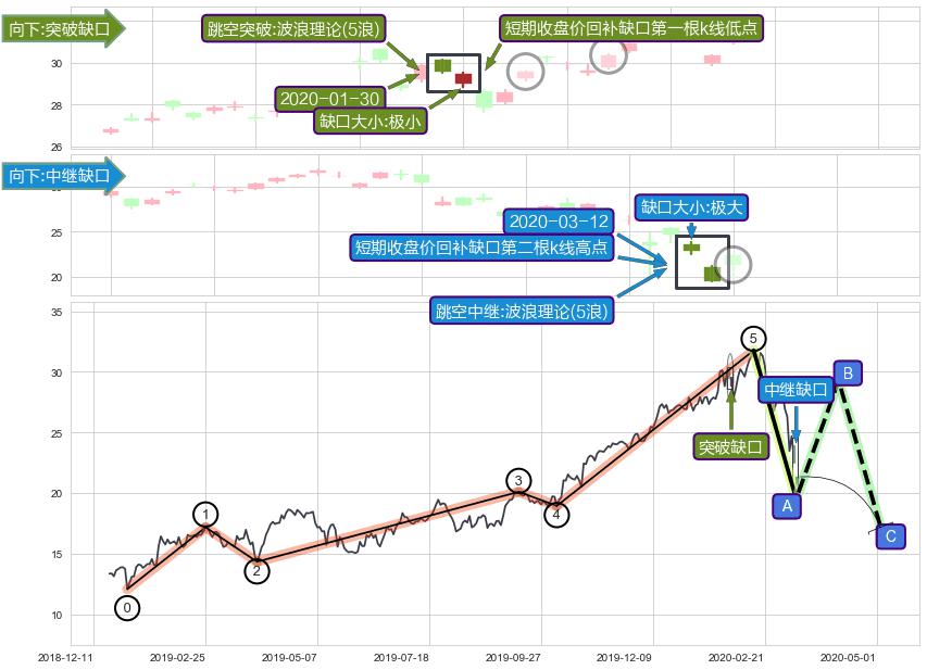 ➢ 2020-01-30形成:向下跳空【突破】缺口