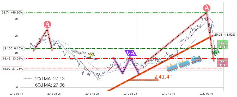 ♘ 阻力价格位31.74,可信任强度57.36%,距离最后交易2020-03-13形成的收盘价格21.33相差 +48.80%