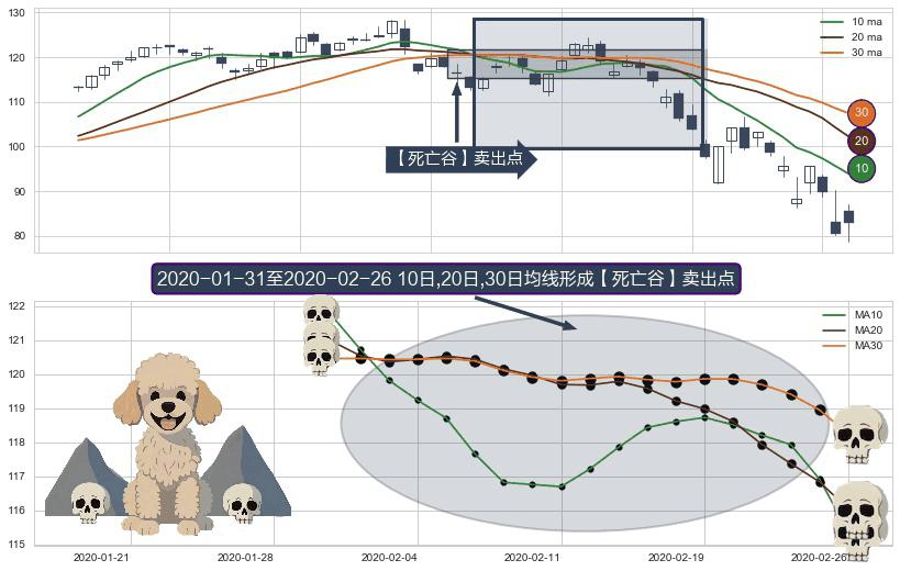 ⚀ 2020-02-03-日至2020-02-26-日显现 10日-20日-30日均线 【死亡谷】卖出点 看空信号,后市看跌,卖出