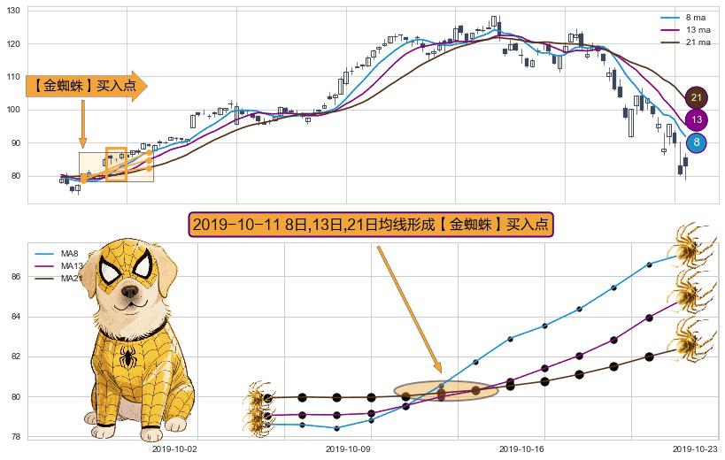 ⚀ 2019-10-11日显现 8日-13日-21日均线 【金蜘蛛】买入点 看多信号,后市看涨,买入