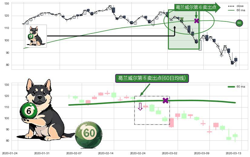 ⚀ 2020-02-21-日显现 葛兰威尔均线 60日均线 第⑥卖出点 走势反转见顶信号,后市看跌,卖出信号