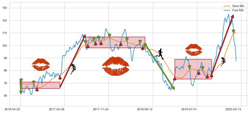 2017-06-28至2018-07-24 慢线与快线多次接触,存在上下穿越,有缠绕