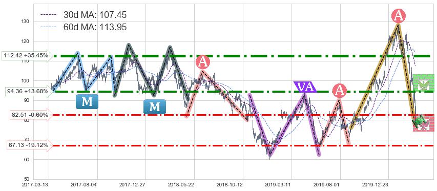 ♘ 阻力价格位112.42,可信任强度90.64%,距离最后交易2020-03-13形成的收盘价格83.00相差 +35.45%
