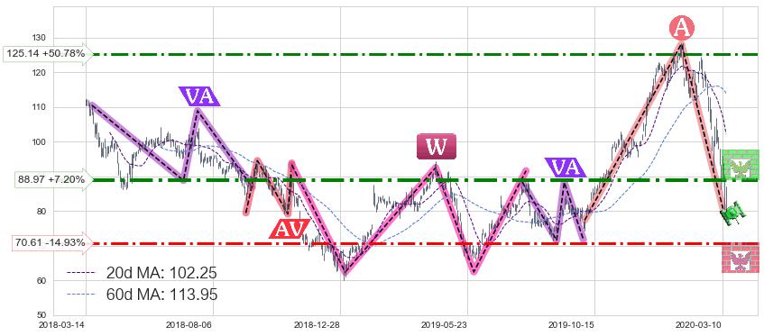 ♘ 阻力价格位88.97,可信任强度75.72%,距离最后交易2020-03-13形成的收盘价格83.00相差 +7.20%