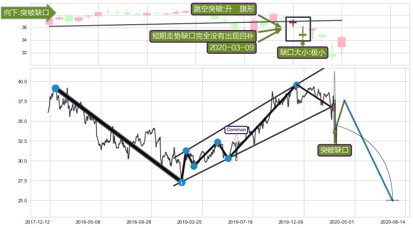 ➢ (Common ⥥ 升⚑旗形) 🔜 突破缺口 综合量化分数:36.25 【强烈看空】