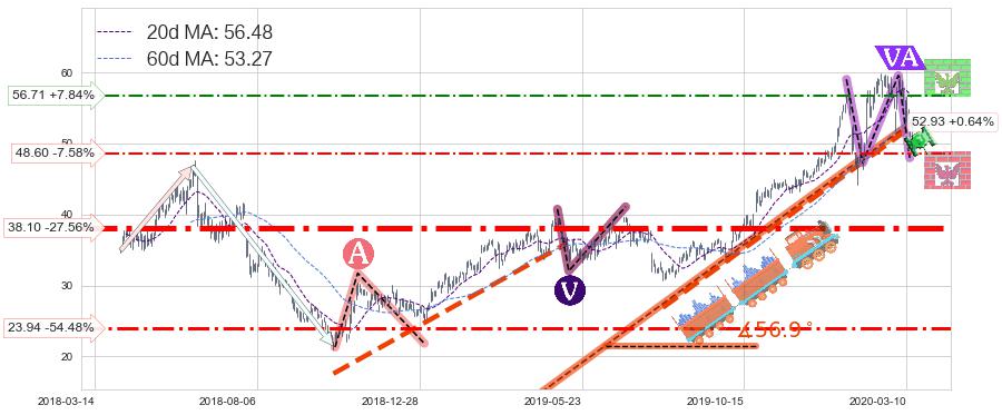 ♘ 阻力价格位56.71,可信任强度53.45%,距离最后交易2020-03-13形成的收盘价格52.59相差 +7.84%