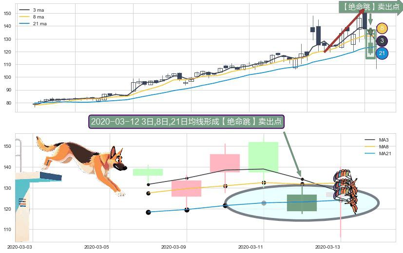 ⚀ 2020-03-12日显现 3日-8日-21日均线 【绝命跳】卖出点 看空信号,后市看跌,卖出