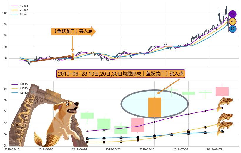 ⚀ 2019-06-28日显现 10日-20日-30日均线 【鱼跃龙门】买入点 看多信号,后市看涨,买入