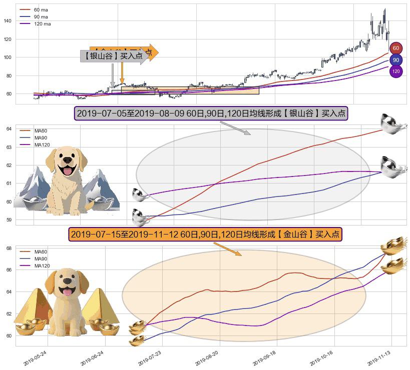 ⚀ 2019-07-16-日至2019-11-12-日显现 60日-90日-120日均线 【金山谷】买入点 其再次确认了买入信号,可靠性更强,买入
