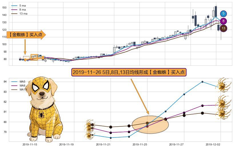 ⚀ 2019-11-26日显现 5日-8日-13日均线 【金蜘蛛】买入点 看多信号,后市看涨,买入