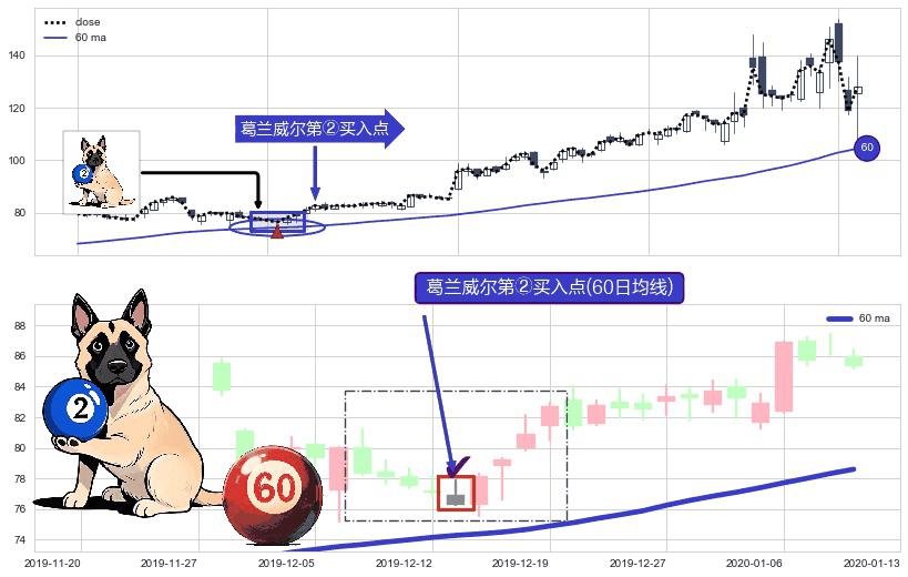 ⚀ 2019-12-13-日显现 葛兰威尔均线 60日均线 第②买入点 上升趋势的中继信号,后市看涨,买进信号