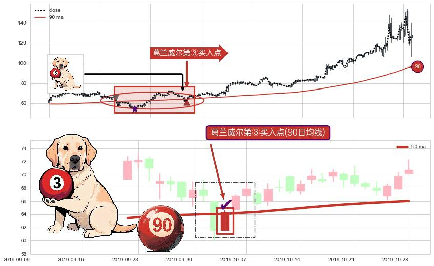 ⚀ 2019-10-03-日显现 葛兰威尔均线 90日均线 第③买入点 上升趋势的中继信号,后市看涨,买进信号