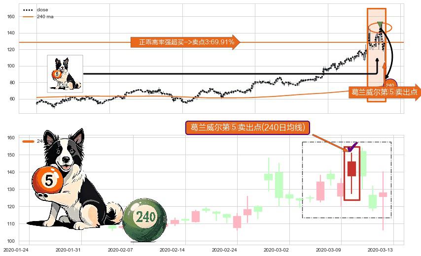 ⚀ 2020-03-10-日显现 葛兰威尔均线 240日均线 第⑤卖出点 上升趋势均值回复的短线回落信号,后市看跌,卖出信号