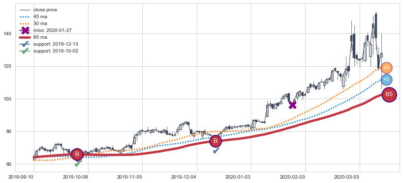 ➢ 发现最优均线组合: 30 , 45 , 65
