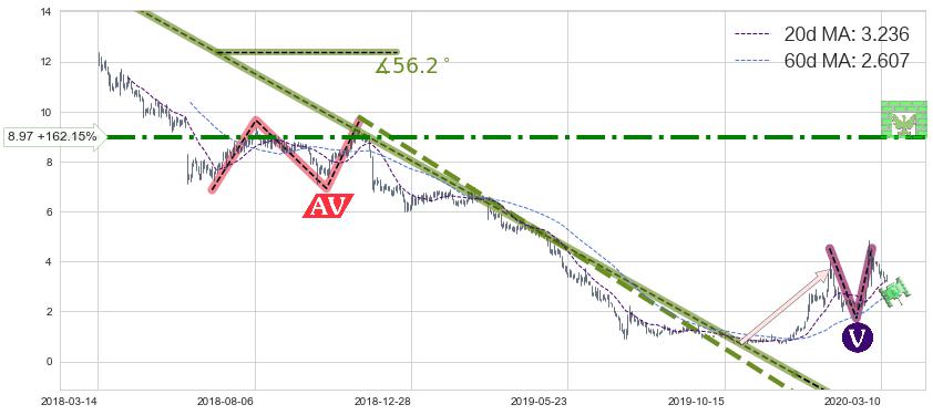 ♘ 阻力价格位8.97,可信任强度72.21%,距离最后交易2020-03-13形成的收盘价格3.420相差 +162.15%