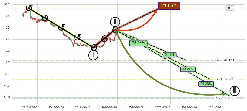 ➣ 循环浪继续向下【平均值】位置(2021-07-13, -6.1856263),匹配聚类样本比例67.48%, 可能性概率53.27%