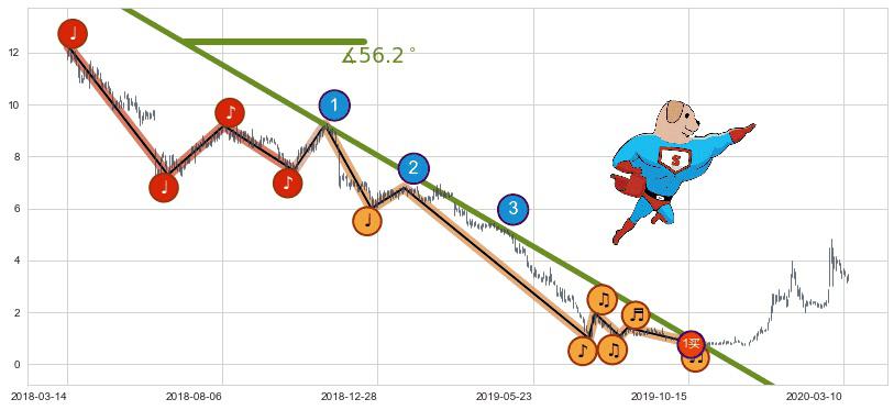 ⚔️ 2018-03-15-2019-12-18下跌趋势存在反转上涨[机会],其原下跌趋势的阻力位(-2.5310435)已被突破[强支撑信号],原下跌趋势角度: 56.2˚