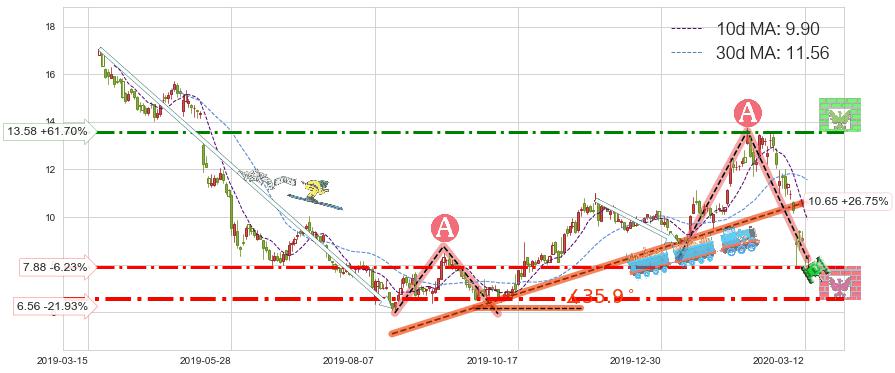♘ 阻力价格位13.58,可信任强度56.90%,距离最后交易2020-03-13形成的收盘价格8.40相差 +61.70%