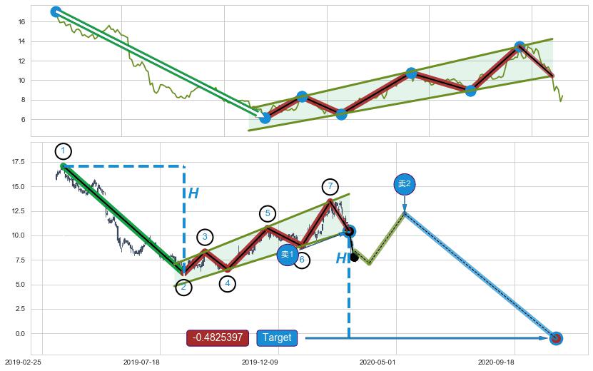➣ 最小中继整理跌幅→𝐇: 10.92 (𝐇旗杆的长度:旗杆起点→顶点)