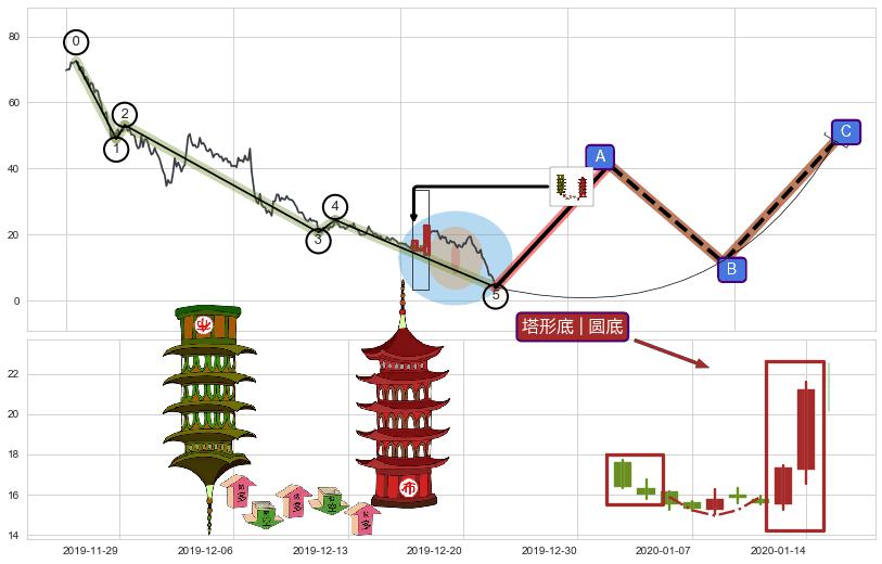 | 5 🅚:早晨之星(黎明之星) ➕ 🌊:波浪理论猜想下跌浪5已形成,猜想后续形成abc反弹上涨(均值回复) ☞ 看多信号 ⇥ 【🅚线】交织【图形】⇥ 综合量化分数: 51 | > |