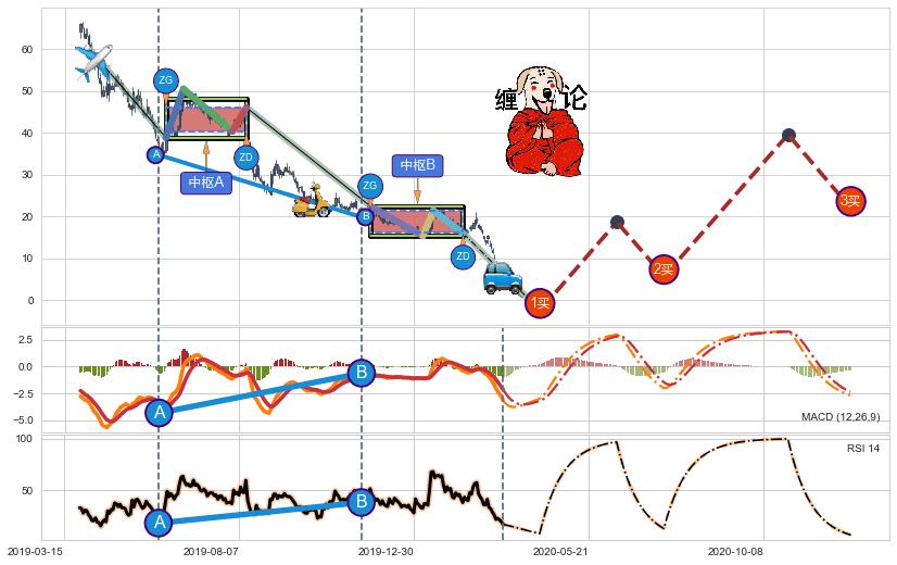 ➣ 【未完成】缠论 起点:2019-04-05, 完成第1中枢A,完成第2中枢B,到达2020-03-13