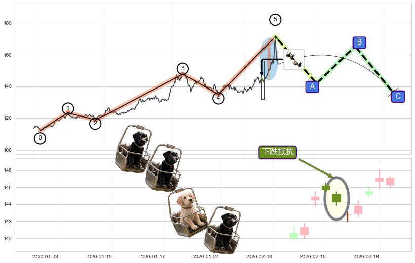 | 4 🅚:吊颈线(上吊线) ➕ 🌊:波浪理论猜想上涨浪5已形成,猜想后续形成回调abc下跌(均值回复) ☞ 看空信号 ⇥ 【🅚线】交织【图形】⇥ 综合量化分数: 46 | > |
