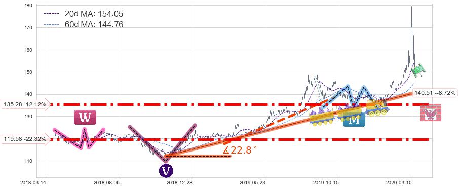 ➢ 预测:2020-05-19,【小幅回撤】稳定目前上涨趋势的前提下,预测价格:144.46