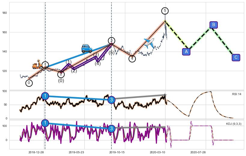 ➣ 第一, 三, 五浪上涨动能逐渐【增强变大】,趋势不断加固