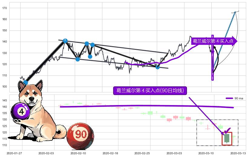 ➢ 低点影线(2019-12-12: 140.23 )→再次回踩→第一根k线高点(2019-12-03: 140.79 )