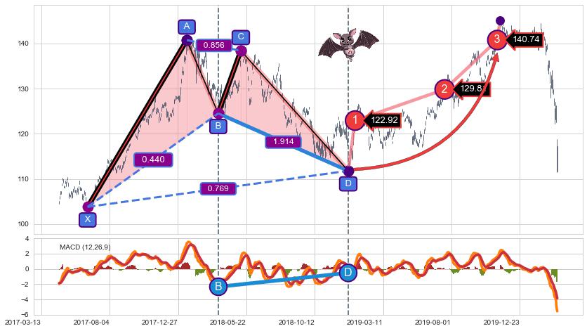 ➣ 已达成看涨【蝙蝠】形态全部的预期目标