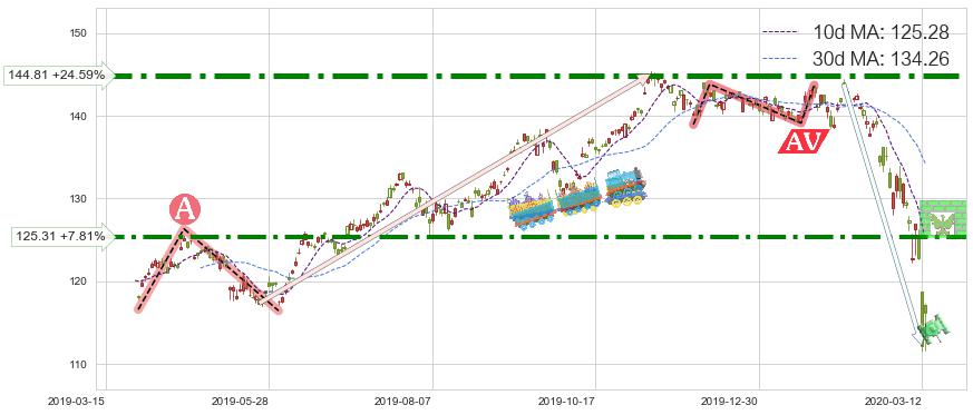 ♘ 阻力价格位125.31,可信任强度73.44%,距离最后交易2020-03-13形成的收盘价格116.23相差 +7.81%