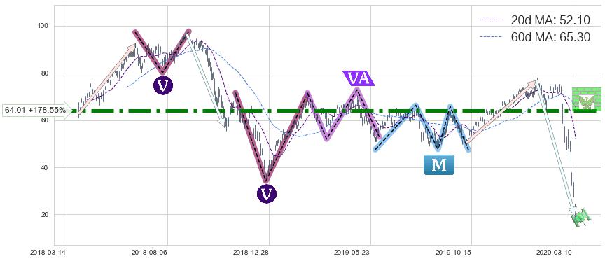 ♘ 阻力价格位64.01,可信任强度90.16%,距离最后交易2020-03-13形成的收盘价格22.98相差 +178.55%