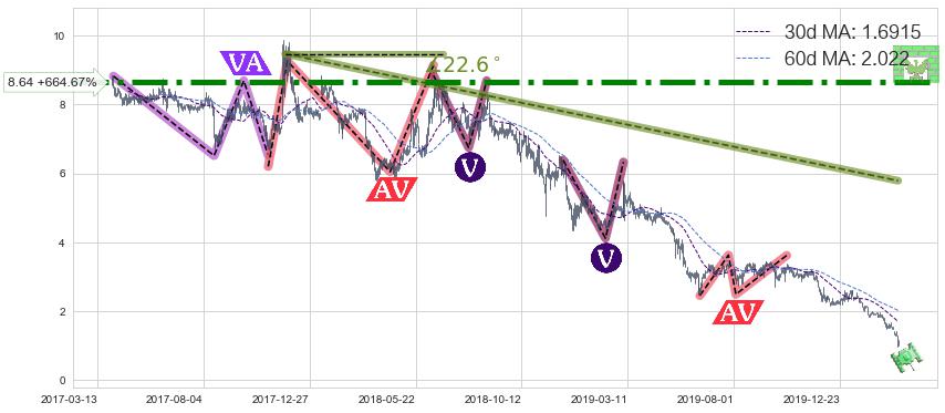 ♘ 阻力价格位8.64,可信任强度99.00%,距离最后交易2020-03-13形成的收盘价格1.1300相差 +664.67%