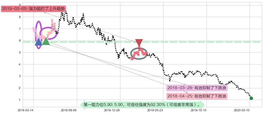 ♞ 第一阻力位5.90价格为5.90,其通过量化计算出的可信任强度为92.30%(可信度非常强)。