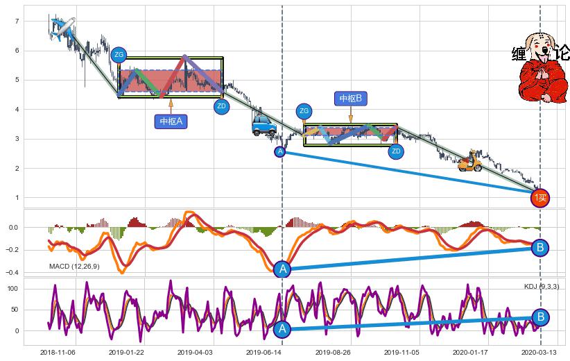 ➣ 【已完成】缠论 起点:2018-10-22,完成第1中枢A,完成第2中枢B,终点:2020-03-13,缠论共350交易日
