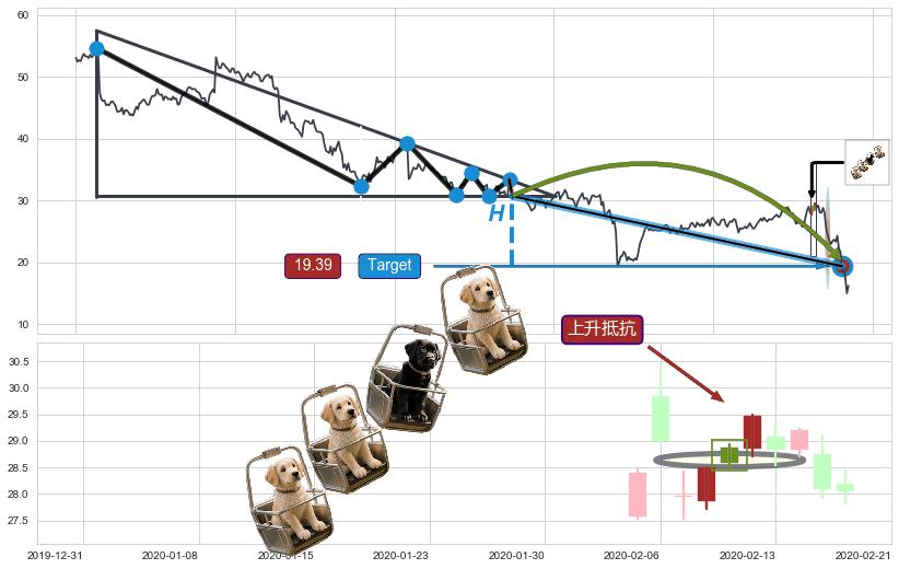 | 10 🅚:下跌抵抗 ➕ 📐:升楔型下行突破支撑位破位, 猜想持续下沉下跌,被突破的支撑位已变为阻力位 ☞ 看空信号 ⇥ 【🅚线】交织【图形】⇥ 综合量化分数: 38 | > |