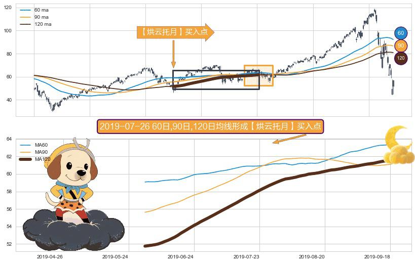 ⚀ 2019-06-03日-2019-09-19日显现 60日-90日-120日均线 【烘云托月】买入点 看多信号,后市看涨,买入