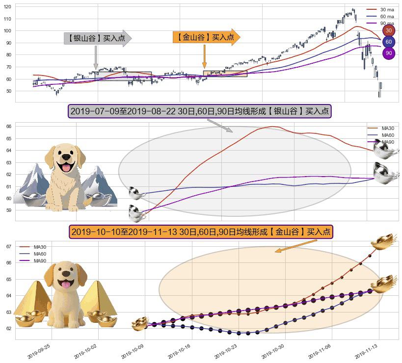 ⚀ 2019-10-11-日至2019-11-13-日显现 30日-60日-90日均线 【金山谷】买入点 其再次确认了买入信号,可靠性更强,买入