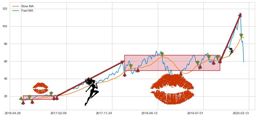 2018-02-14至2019-10-14 慢线与快线多次接触,存在上下穿越,有缠绕