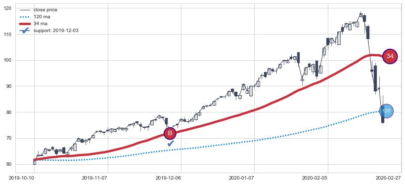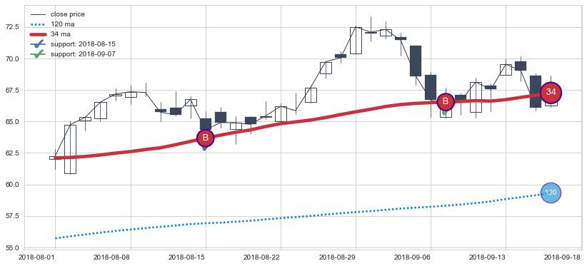⚁ MA60和MA90走势平行,且始终保持在短距离内,MA120始终在短中期均线下方,与短中期均线保持一定的距离,微微上行