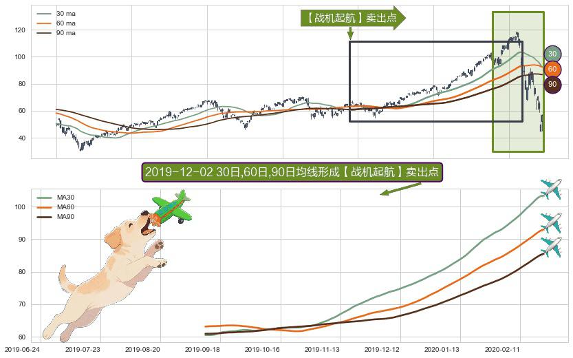 ⚀ 2019-09-11日-2020-02-24日显现 30日-60日-90日均线 【战机起航】卖出点 看空信号,后市看跌,卖出